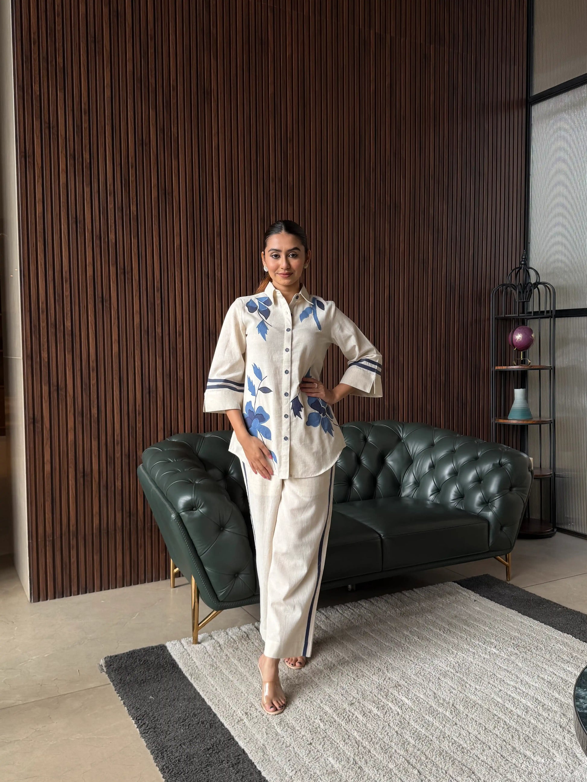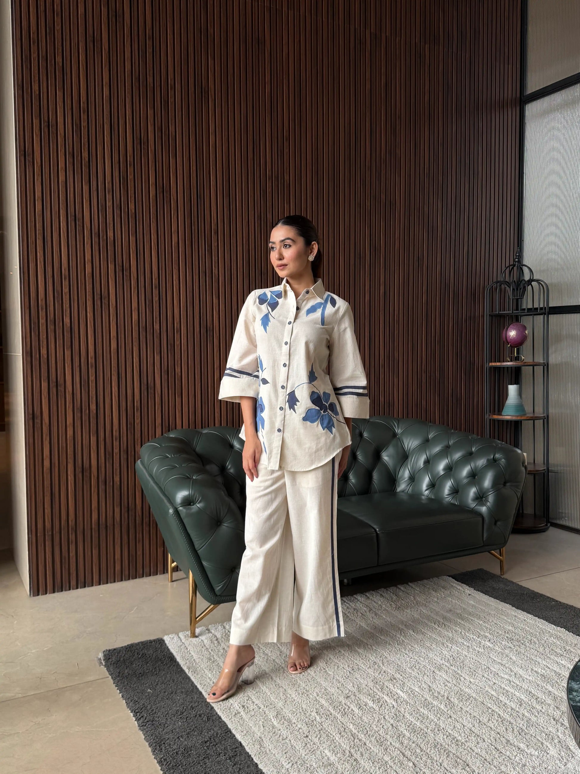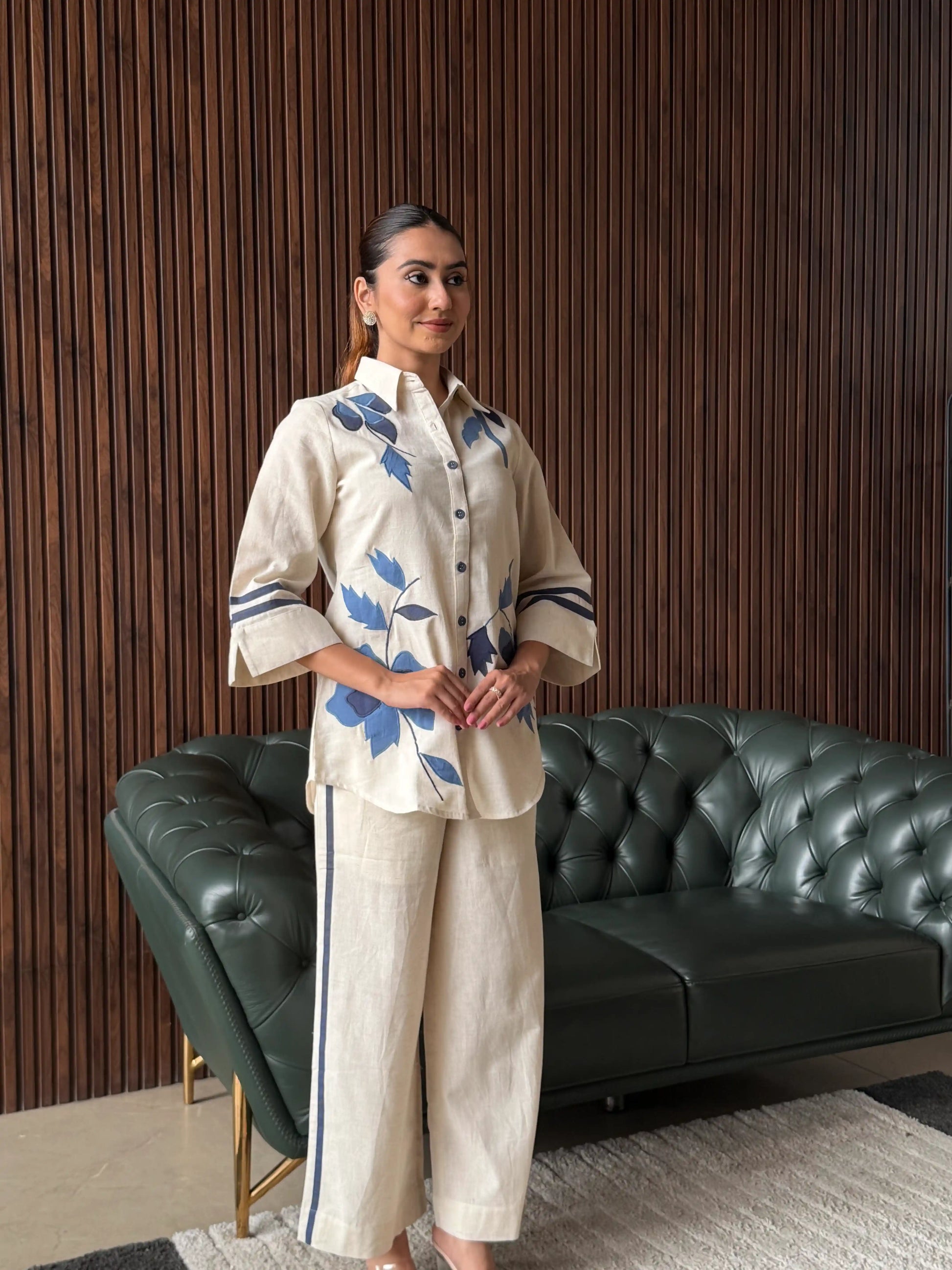 A smart olive green co-ord set featuring subtle embroidery on the kurta and matching tapered pants. Designed with a relaxed yet structured fit, this outfit offers a modern, minimal look—perfect for everyday wear or casual outings with a refined touch.