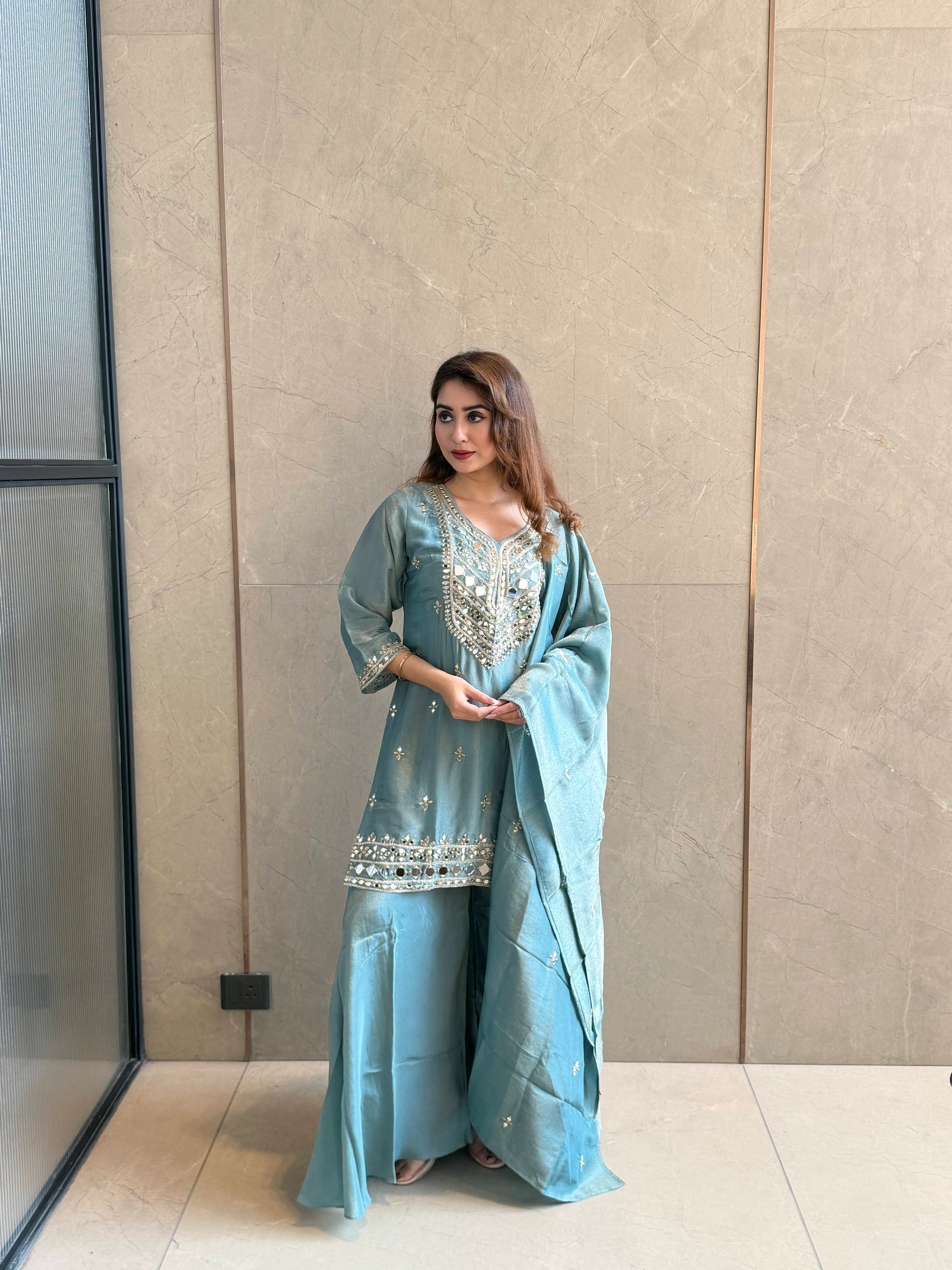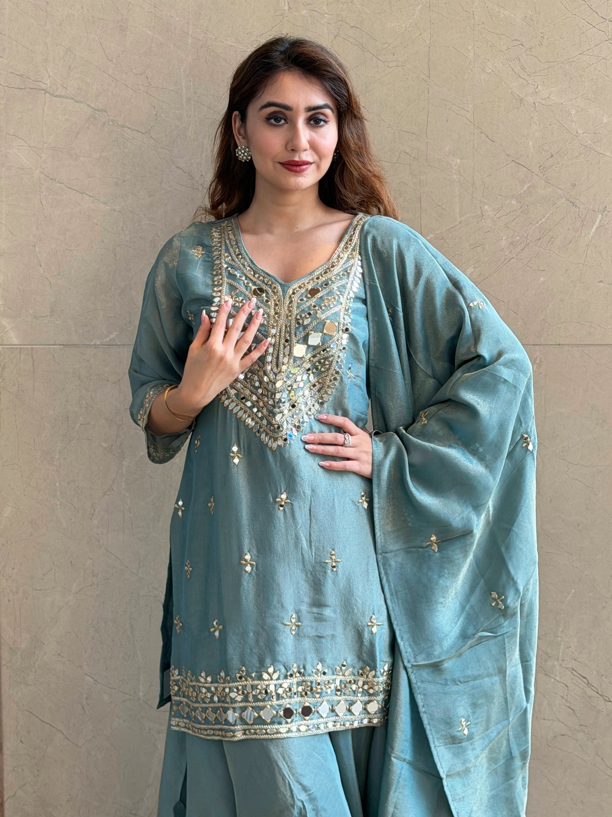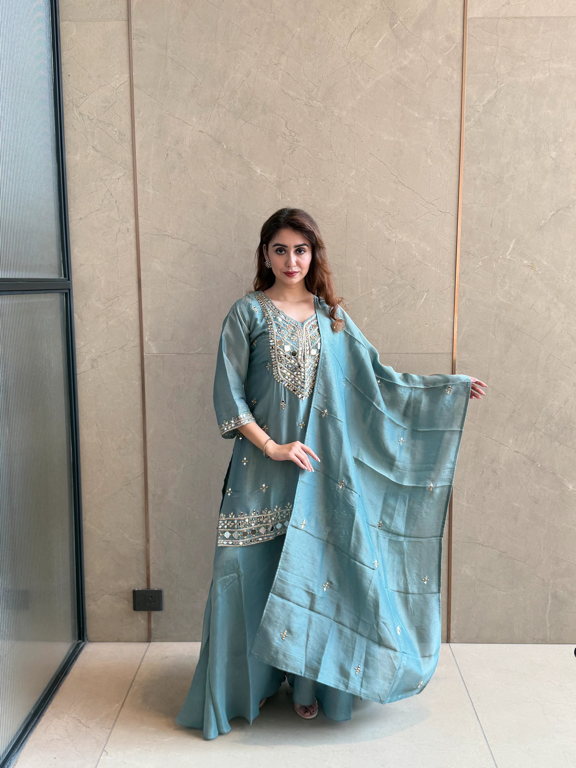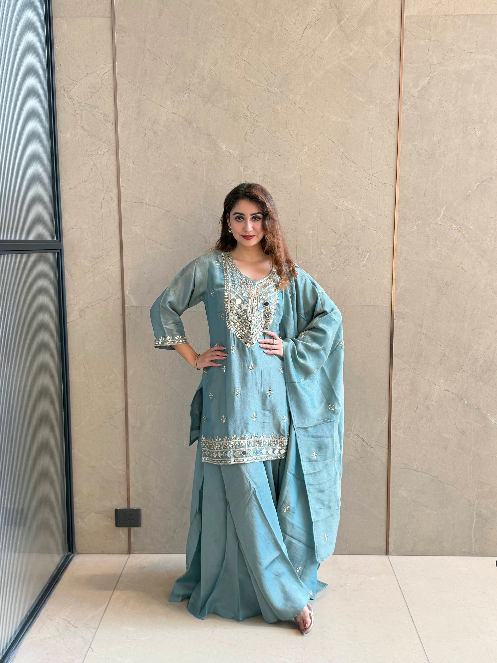 Elegant and refined, Royal Sage Set is designed for graceful festive dressing. With its soothing hue and intricate detailing, it’s the perfect blend of subtle luxury and timeless charm.