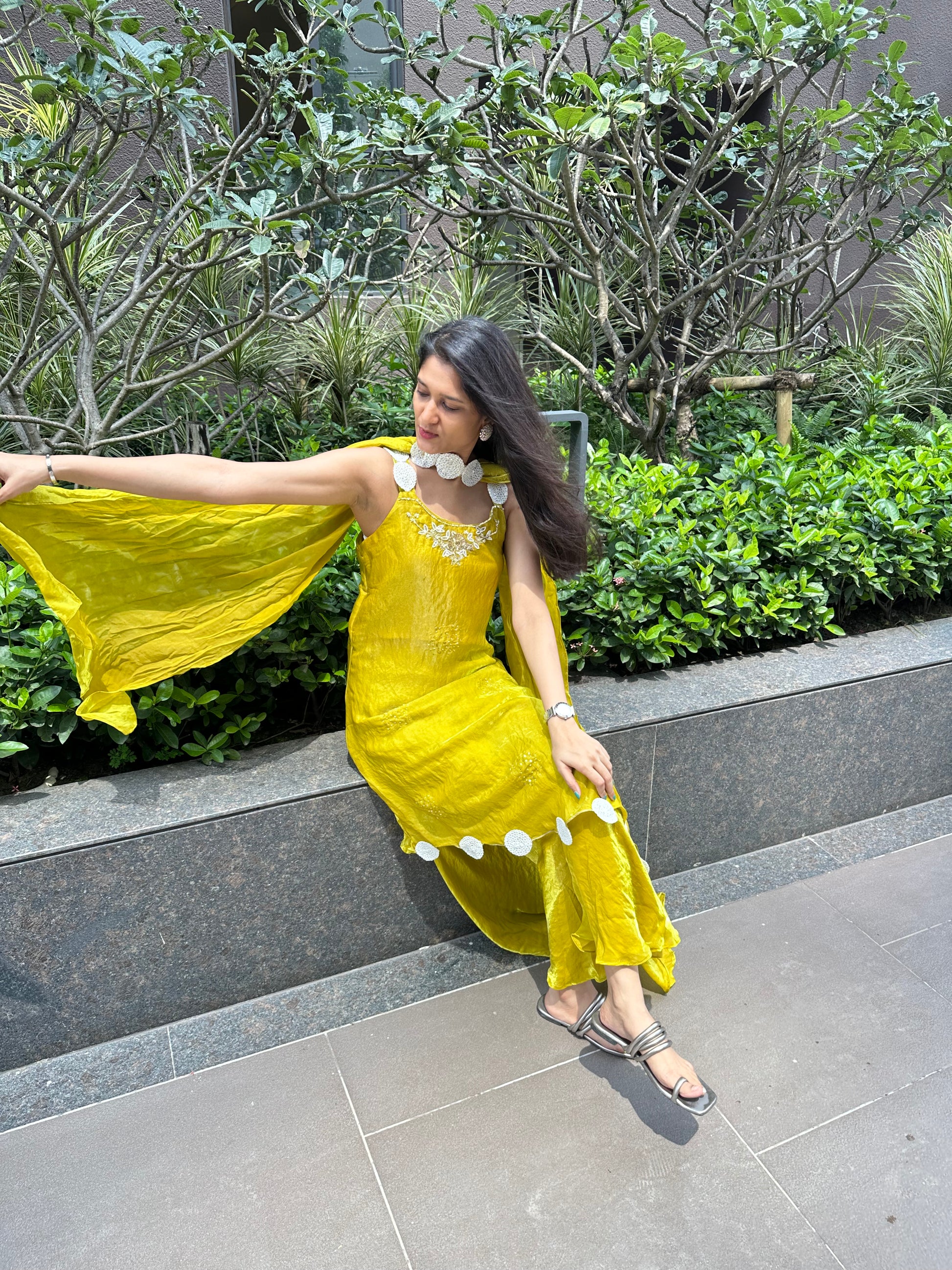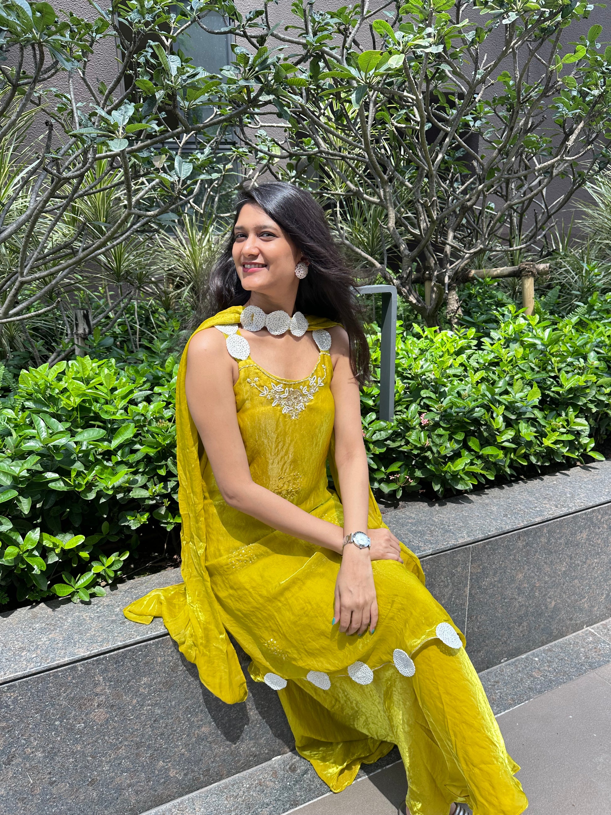 Yellow kurti Pallazo set with dupatta